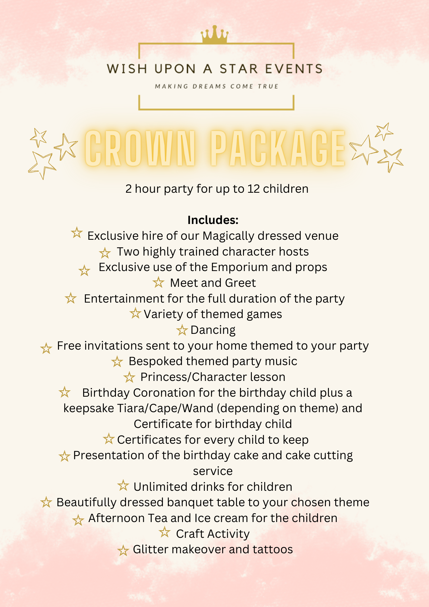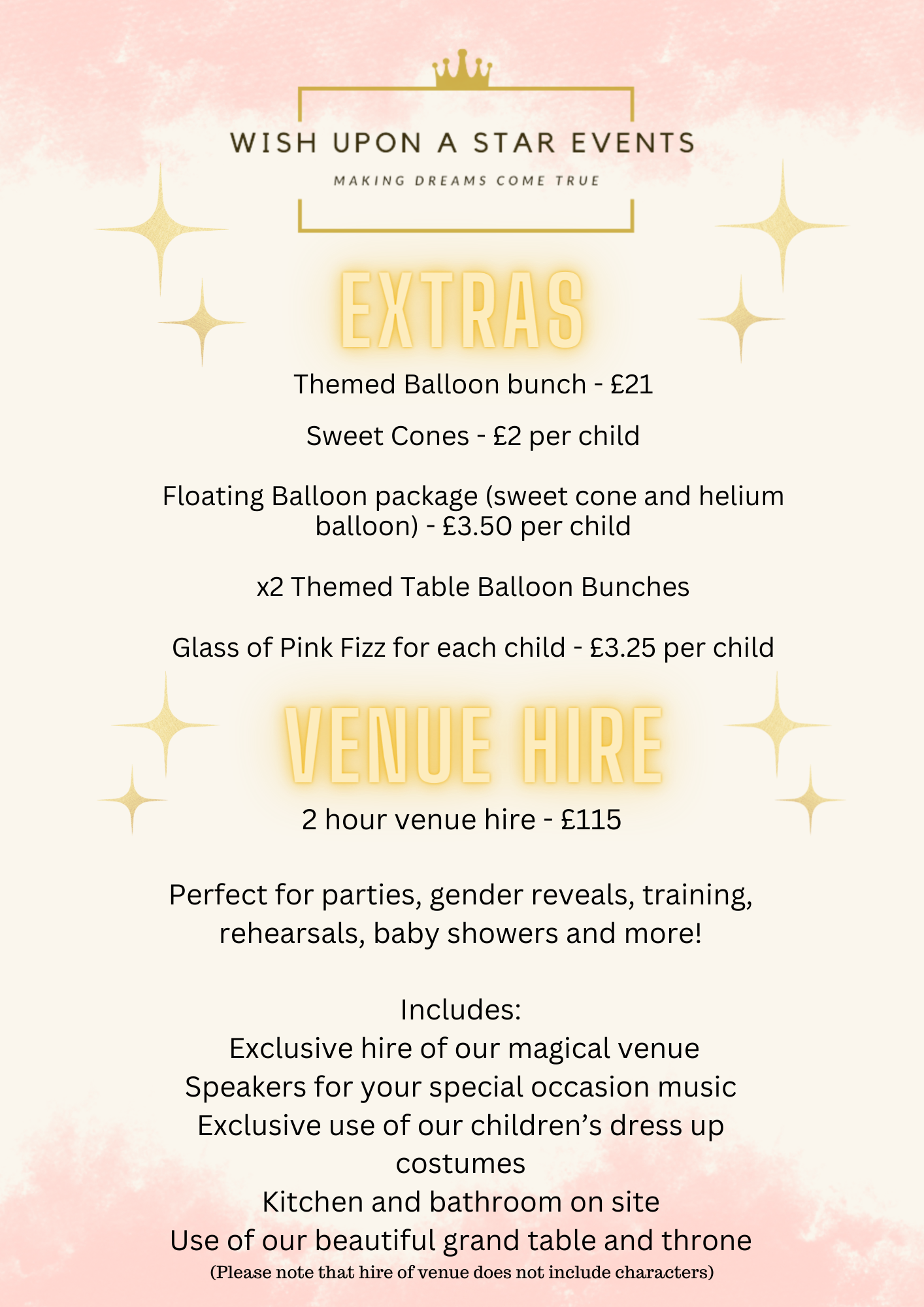 Enjoy a stress-free experience with our dedicated team handling food, coordination, and cleanup. Choose from customisable packages to suit your preferences and budget, whether it’s a magical tea party, superhero smash, or Barbie makeover extravaganza. Book your character party or experience one of our many, regular events at our venue and treat your child to an extraordinary experience designed for joy, wonder, and celebration in the heart of our enchanting kingdom!